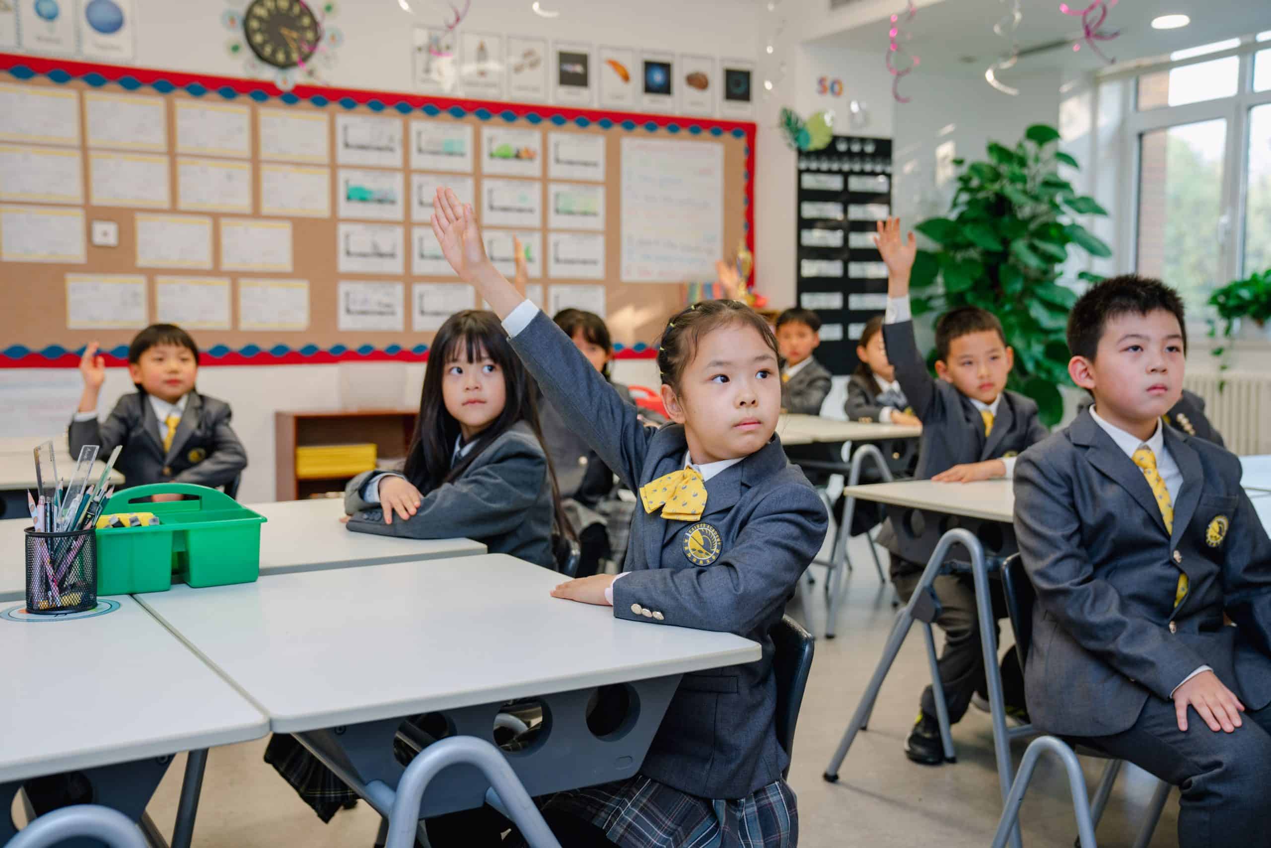 北京海淀凯文学校小学部参照九年义务教育大纲,同时参考美国州共同核心课程标准(Common Core State Standards),打造的中西合璧的双语课程体系。